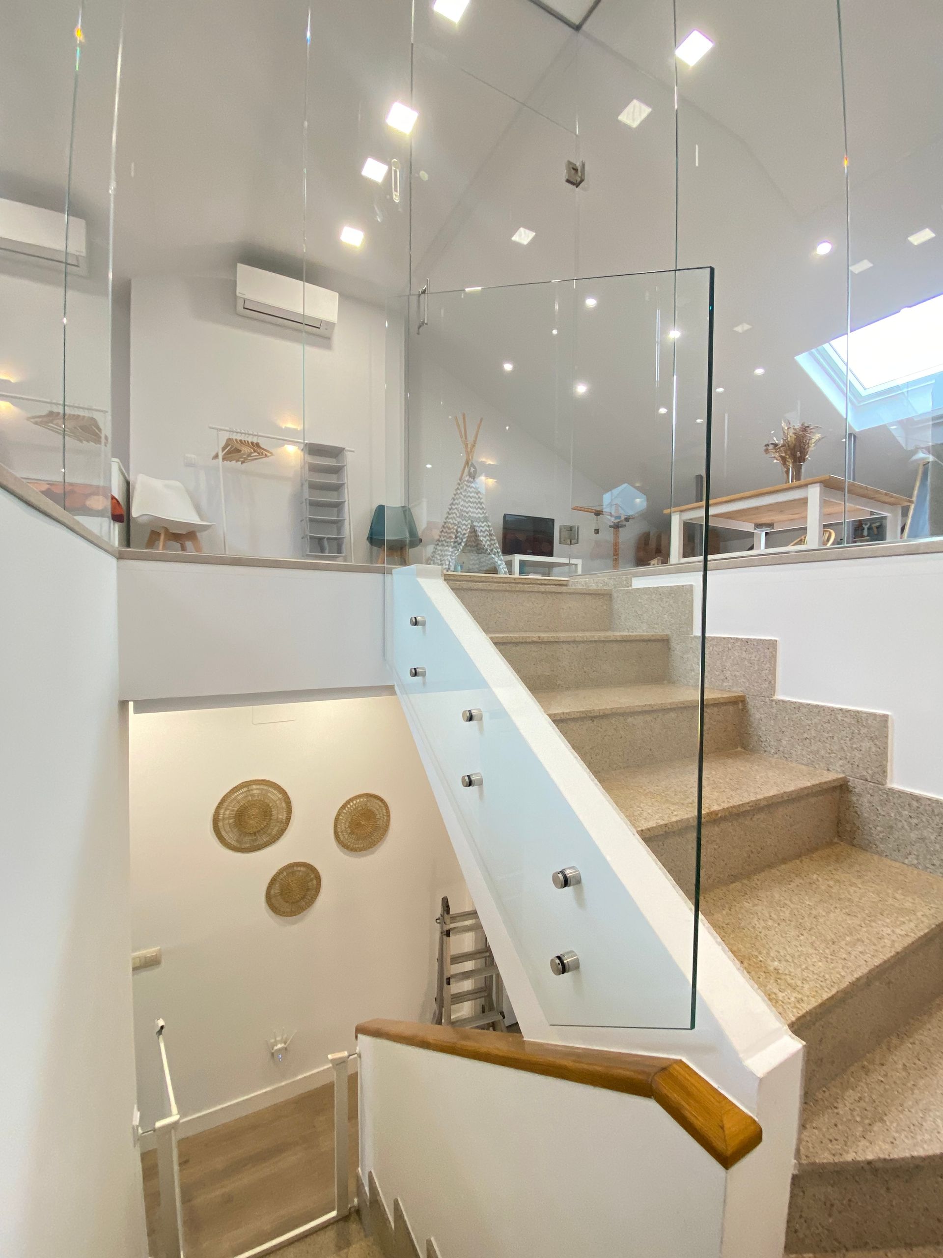 Aplicaciones Versátiles Nuestras barandillas de cristal a medida en Madrid son perfectas para escaleras, balcones, terrazas, patios y pasarelas. Además, pueden instalarse con o sin pasamanos, con sistemas de fijación visibles o completamente integrados para un acabado minimalista.