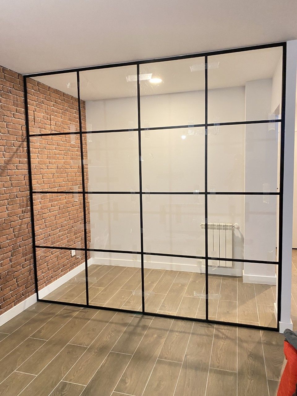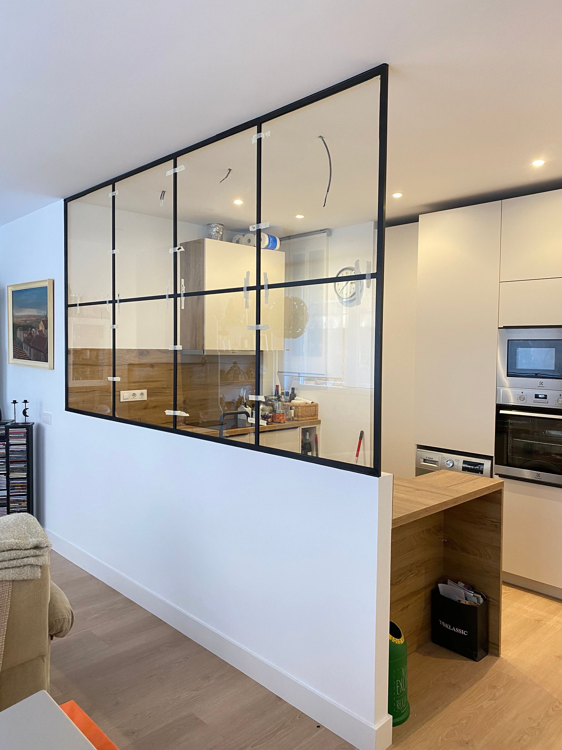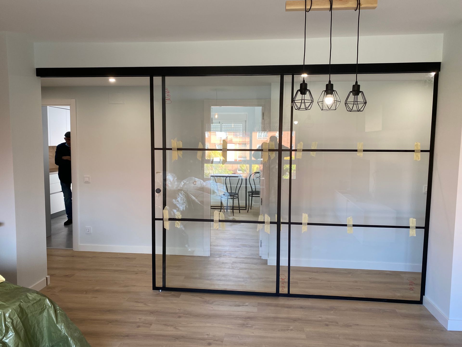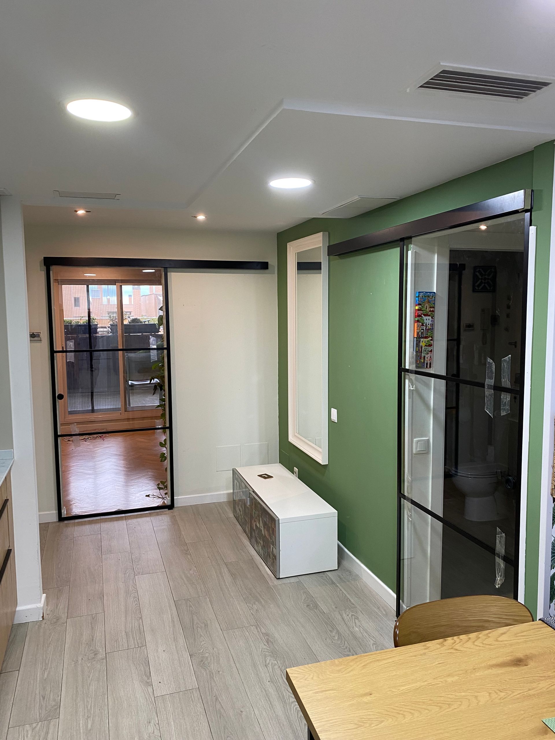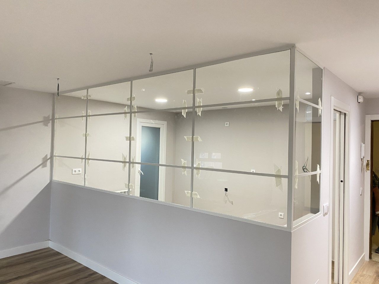 Mamparas estilo vintage, tambien llamadas estilo industrial, realizadas a medida con vidrios laminares de seguridad y perfilería en aluminio lacado. Color a elegir, consiguiendo un efecto similar a las estruturas de hierro, pero con menos grosor en los marcos y quedando muy agradables a nivel decorativo y pudiendo aplicar el sistema, igualmente, a mamparas de ducha, ya que no se oxidan.